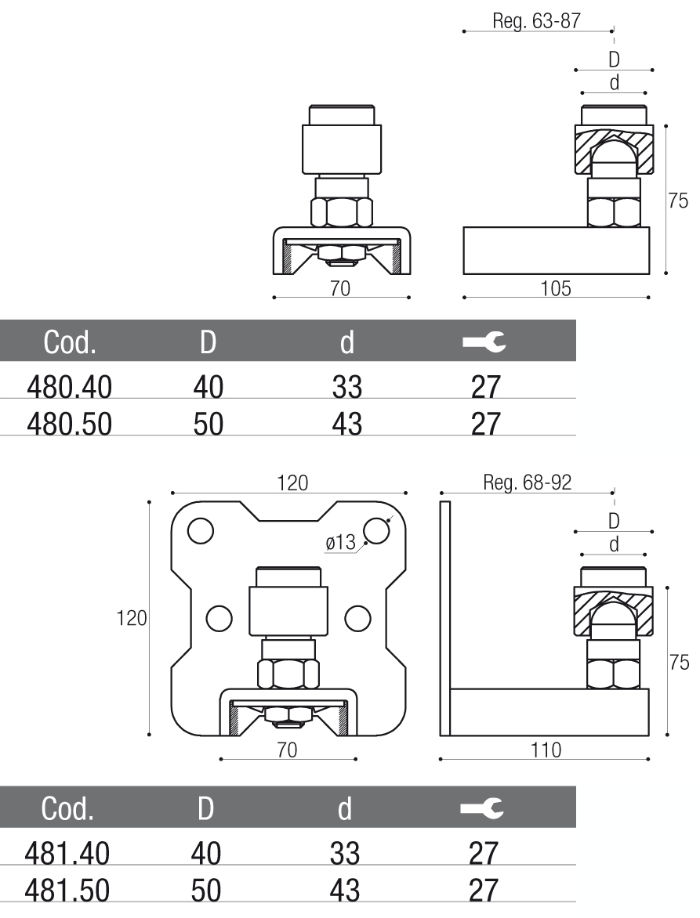Adjustable lower hinge for swing gates by Brevetti Adem. Discover measurements, technical drawing and features.