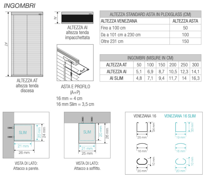 Measures of the venetian blind (look at the blue ones for the Slim version):