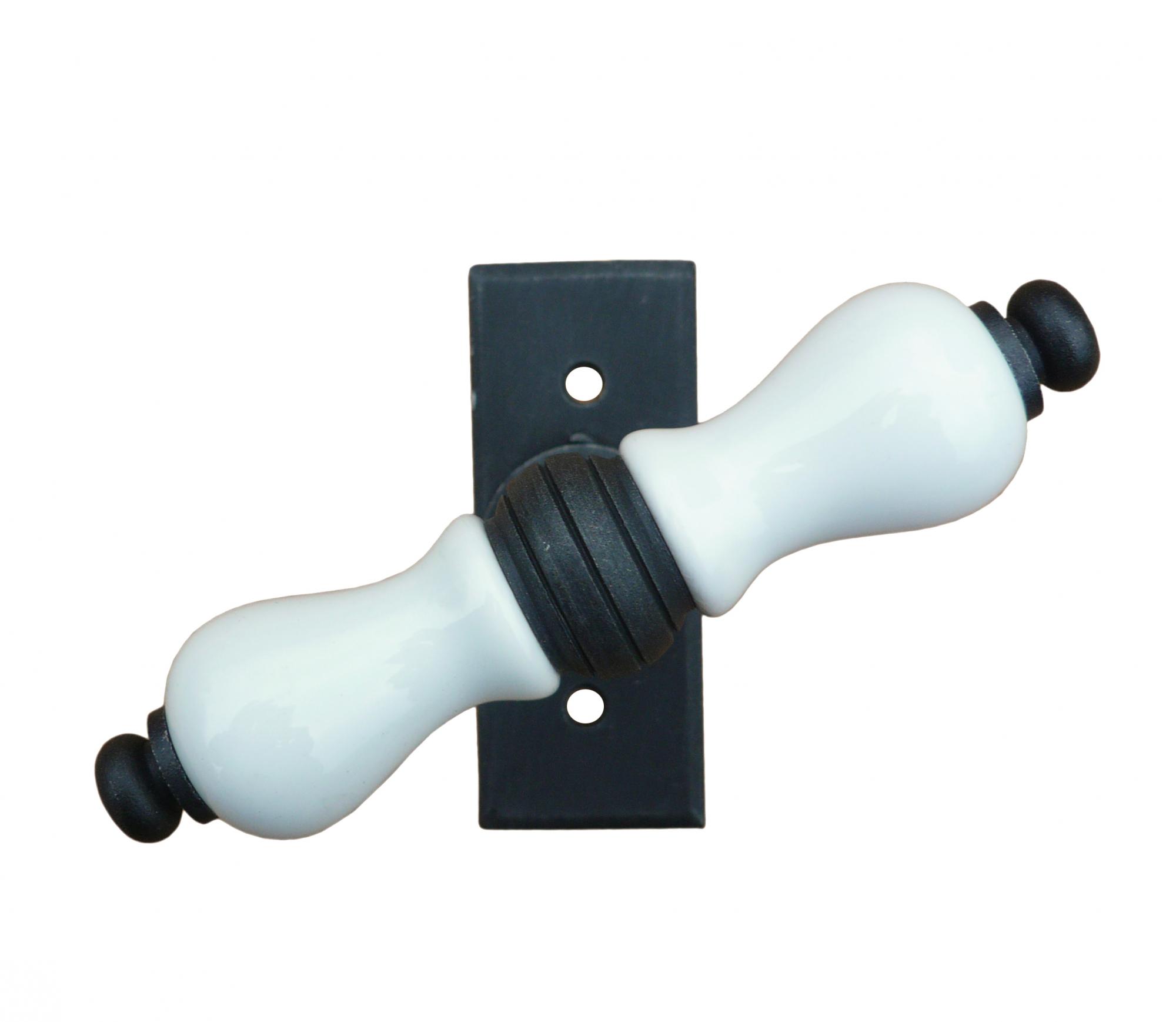 Amsterdam Galbusera Window Handle with Rosette Porcelain and Wrought Iron