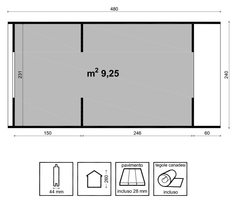 Camping Pod in Fir Wood - Camping Bungalow 240x480 cm - Tent Shape