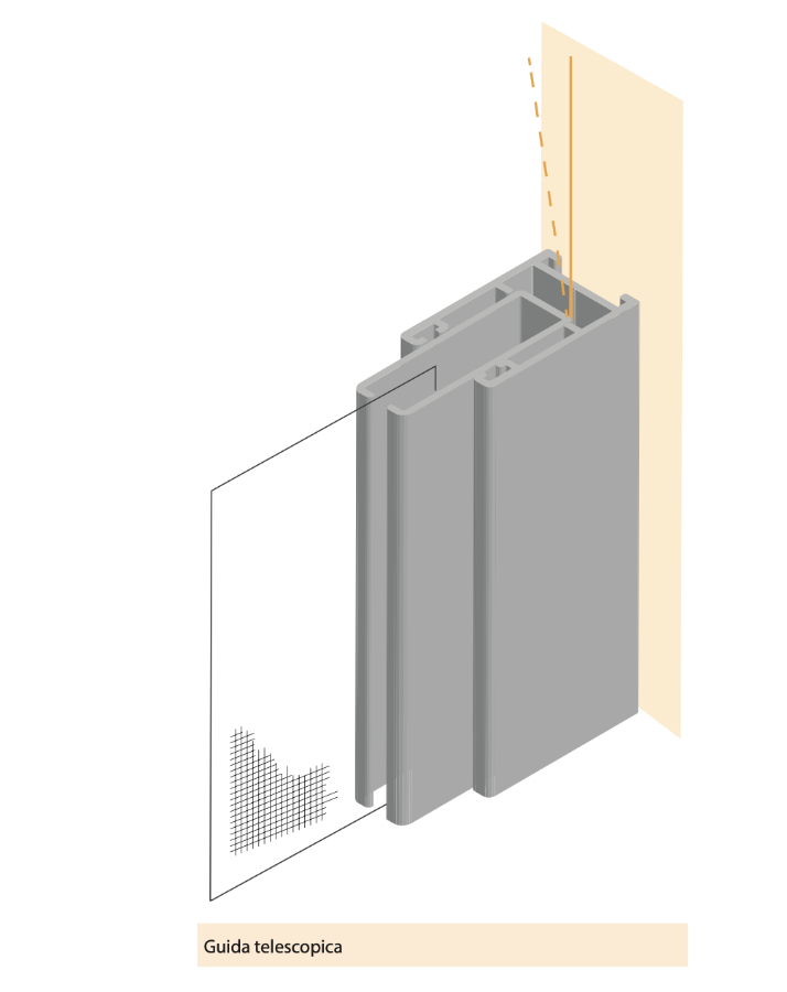 - Livia Catena Telescopica is a vertical insect screen with chain winding, buttons on the edge of the net and telescopic guide ;
