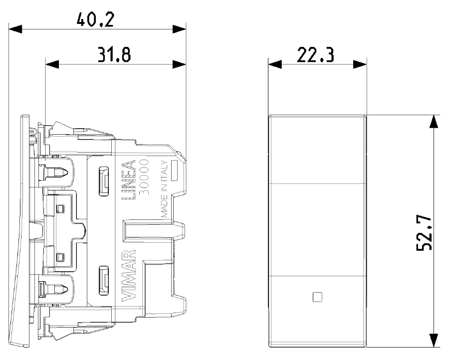 Materials and dimensions VIMAR LINEA 30000.B/C/G