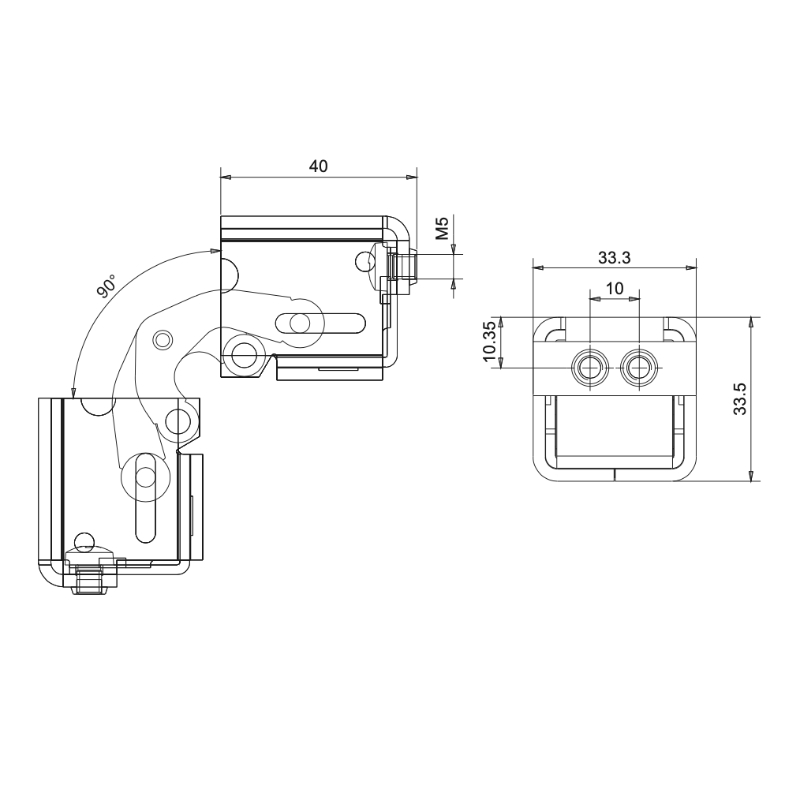 - 133/1.2.3 - CONCEALED HINGE FOR COMPLANAR IRON PROFILES - 90° OPENING;