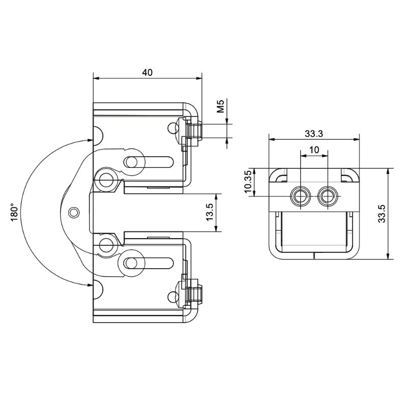 - 133/2.2.3 - CONCEALED HINGE FOR COMPLANAR IRON PROFILES - 180° OPENING;