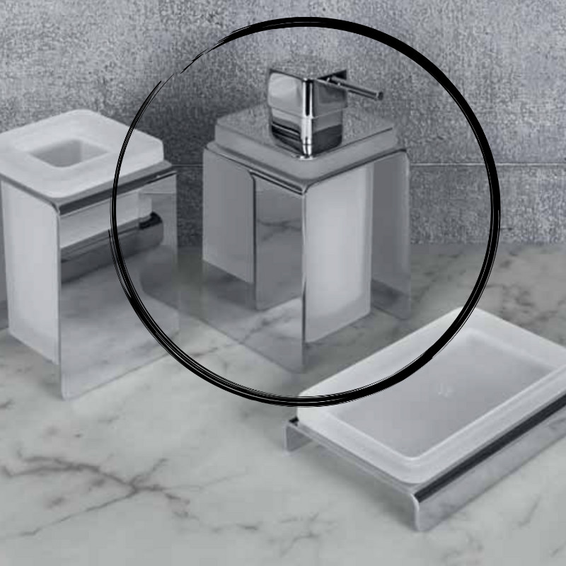 This free-standing soap dispenser from the Forever Colombo Design collection is an ideal accessory to complete your bathroom decor with elegance and functionality.