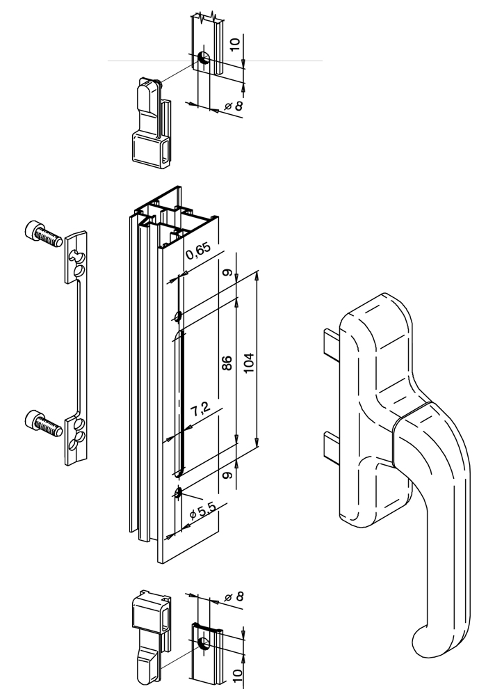 Couple blocks Connecting to handle Cremonese Giesse To Profile EC (European Chamber)