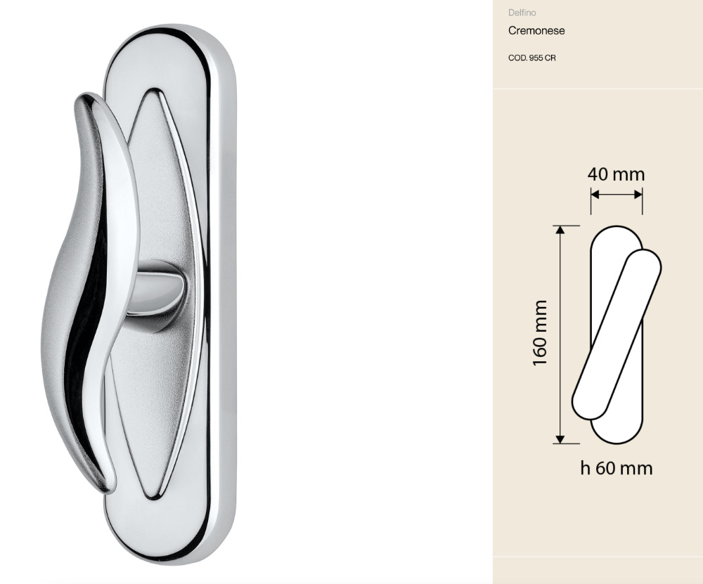 Inspired by the softness of the waves and the grace of the sea, the Delfino Linea Calì Cremonese window handle captivates with its fluid and harmonious lines, evoking the elegant shape of a dolphin. A sculptural and dynamic design that transforms an everyday gesture into a unique tactile and visual experience.
