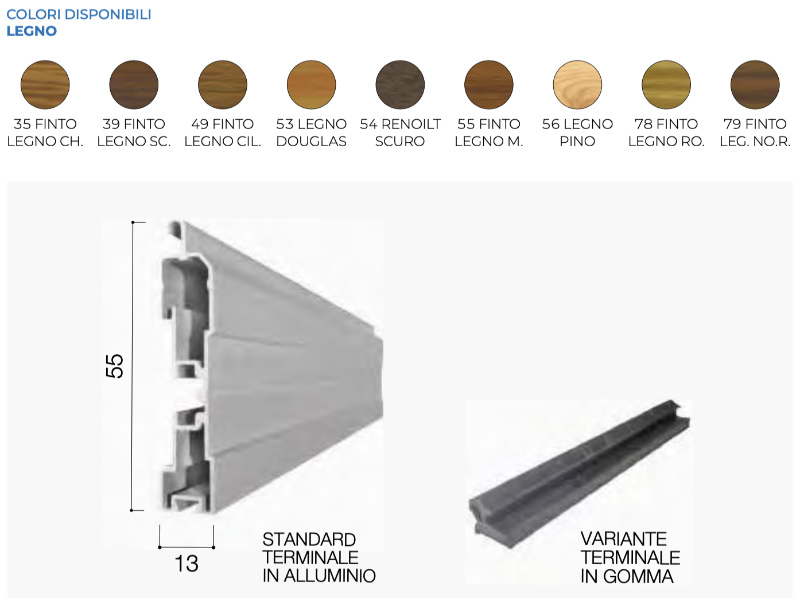 high density aluminum roller shutter complete with: roller attachment, conical cap and aluminum terminal with gasket.