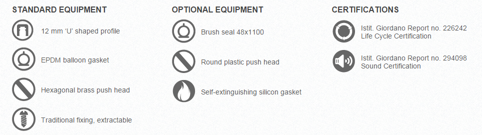 The Comaglio draft excluder is a patented automatic system which, when the door is closed, automatically blocks the possibility of cold, dust and noise invading our environment.