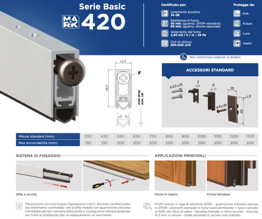 Draft Excluder Comaglio 420 Basic Cheap Series: automatically blocks cold, dust and noise, ensuring a more comfortable environment. Made in Italy with quality materials.