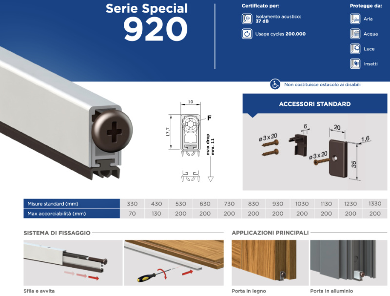 920 Comaglio Special Series - Draft excluder for wooden doors, available in various sizes for optimal insulation and perfect adaptability.