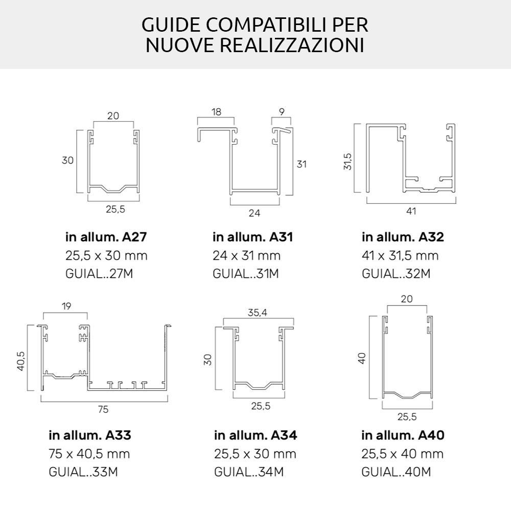 2. Replacement or new installation of roller shutters and sliding guides: for the width of the roller shutter, with reference to the guides to be used, the necessary tolerances must be taken. You can use the old guides if they are in good condition and if they have at least 16.5mm of usable space inside.