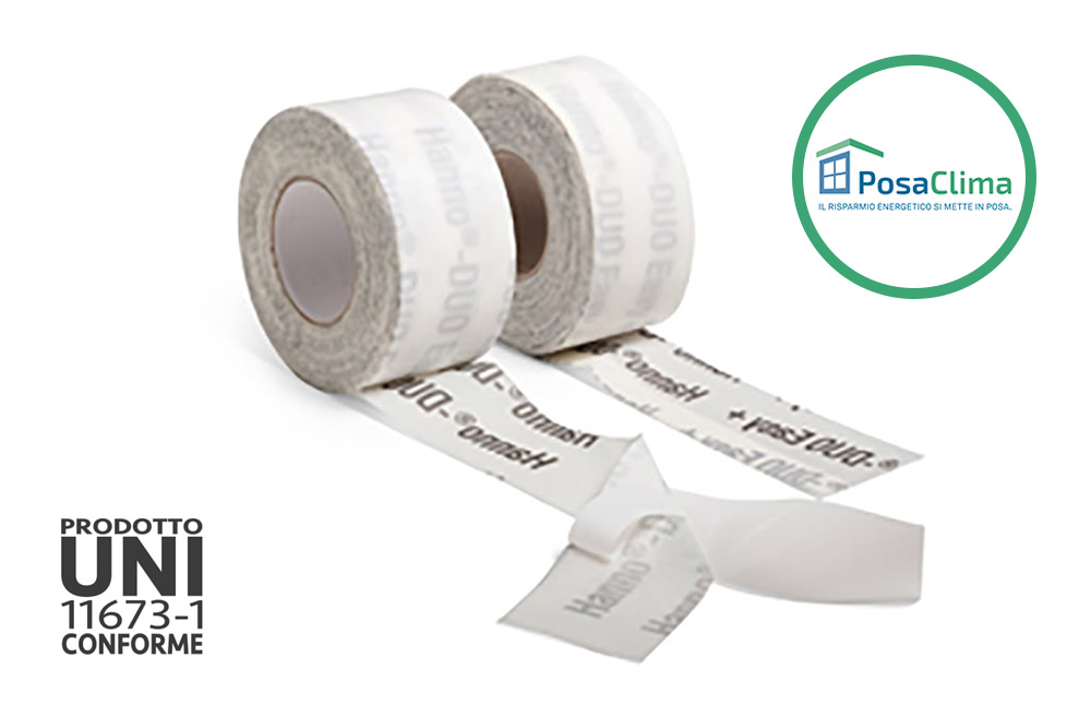 Duo Easy air-vapor sealing film to insulate the window . Composed of a modified polyamide fabric consisting of a 5-layer waterproof armor. It has a completely self-adhesive side with a very high bonding power.