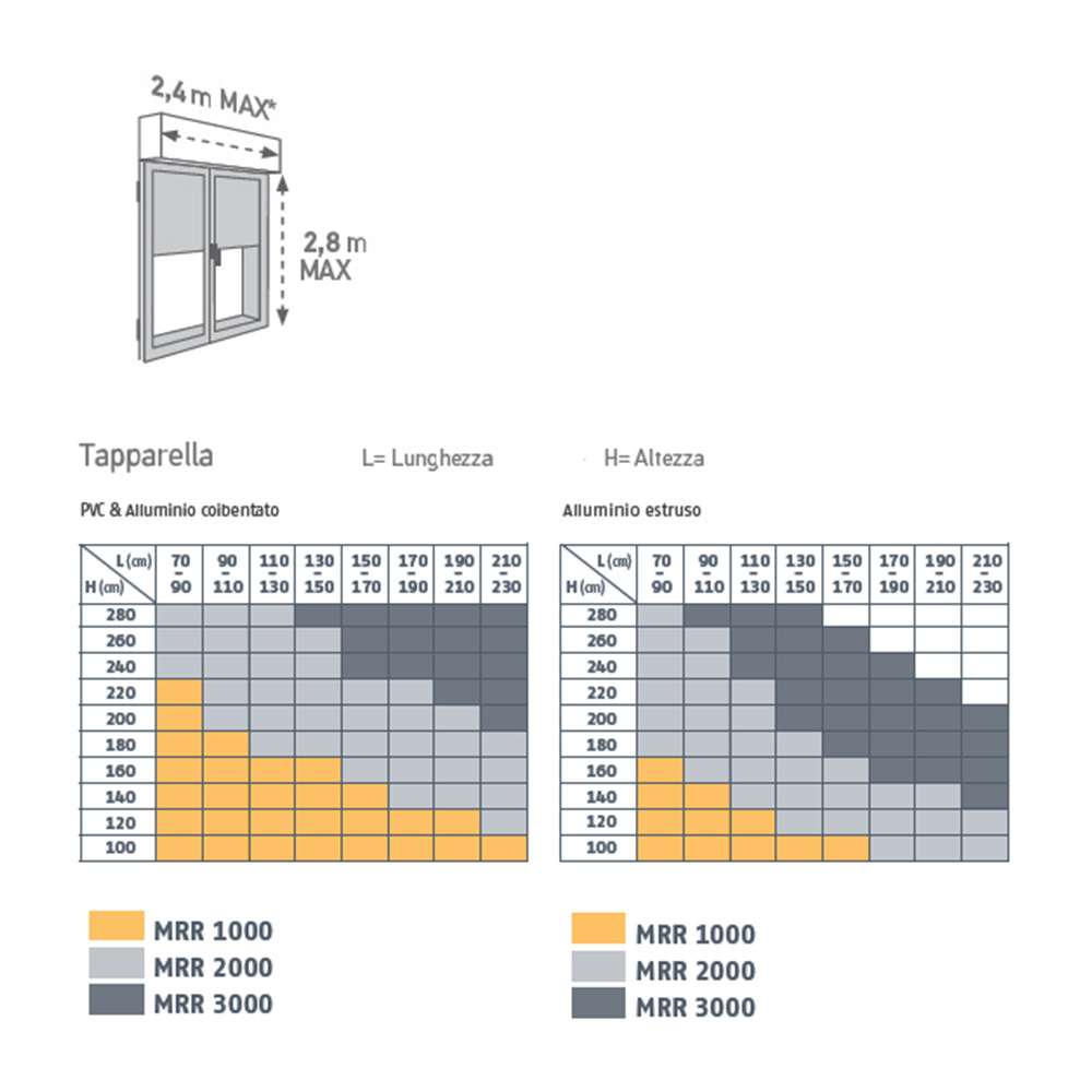 • The choice of the motor must be based on the dimensions and weight of the roller shutter to be moved, which must be evaluated on the basis of specific characteristics (see summary tables below).