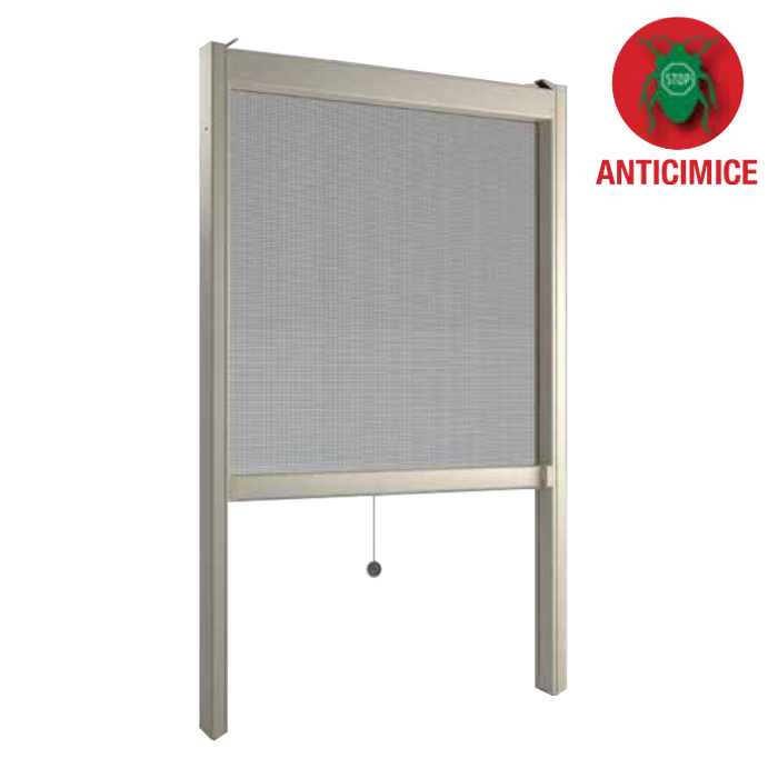 Thanks to its telescopic profiles and the standard upper brush, the Estetika Bettio insect screen for windows adapts to the most irregular compartments without the addition of thicknesses, silicone or various gaskets. The guides can be easily self-adjusted during installation by simply lowering and sliding the handle bar to full height.
