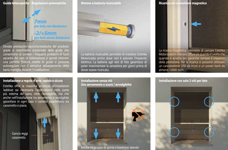 As mentioned a moment ago, the Estetika Bettio insect screen with motor is equipped with an ANIMA21 windproof system which allows the