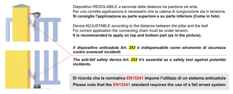 Sistema di Sicurezza Anticaduta per Cancelli a Battente - Con catena - Nova-Ferr 253