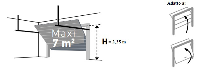 • The GDK 700 motorization kit is suitable for automating overhead or sectional overhead garage doors. For the motorization of counterweight up-and-over doors (semi-edging), the accessory for semi-protruding garage door must be added. Once installed, you can enter the house without getting out of the car thanks to the two remote controls supplied.