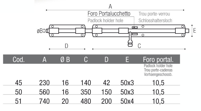 Catenaccio per Cancello o Portone Zincato con Incontro - Brevetti Adem