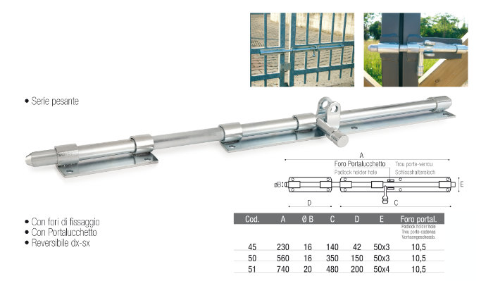 This heavy Adem deadbolt is the ideal solution for doors, gates, gardens, animal enclosures and has applications in various sectors and types of industrial products.