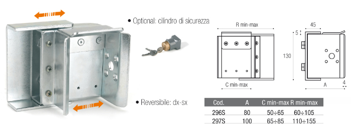 The striker for sliding gate is reversible , thanks to the possibility of disassembling and then repositioning the upper gate.