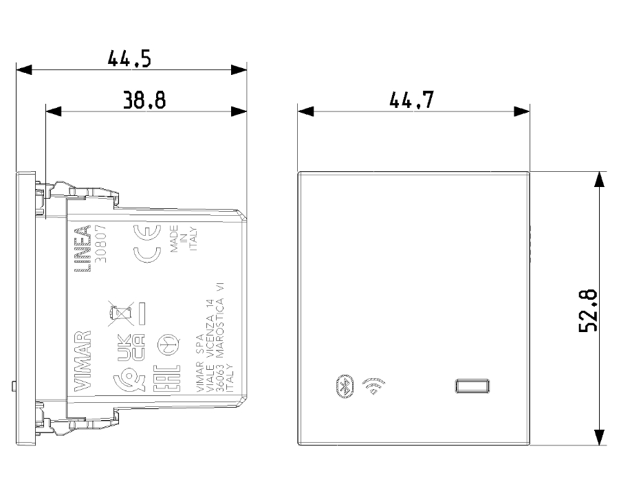 IoT Bluetooth Wi-Fi gateway for integration, configuration, supervision of VIEW Wireless (VIMAR LINEA 30807.B/C/G) , via Cloud and App for smartphones, tablets, power supply 100-240 V 50/60 Hz, choice of color (white, hemp or black) - 2 modules.