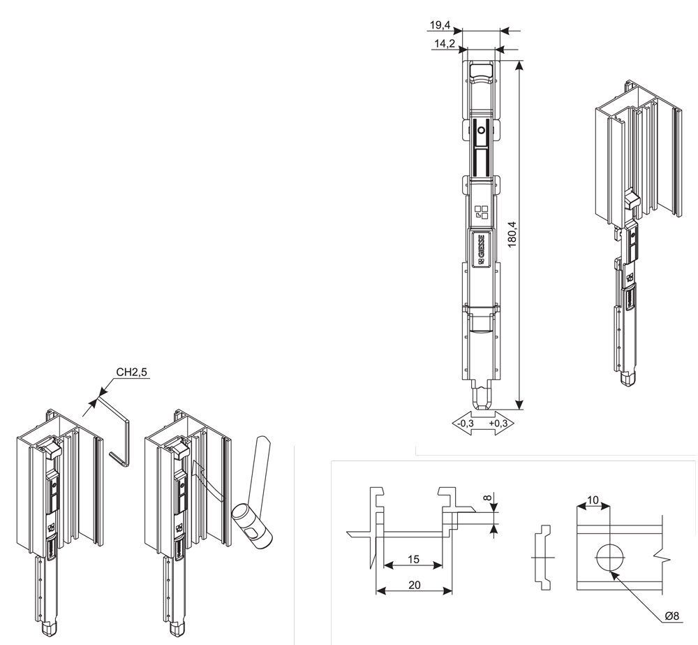 The side walls have the Appendices intended to trafilarsi upon insertion in the dovetails, in order to compensate the tolerances of extrusion and insights of the thickness of the finishes, painted.