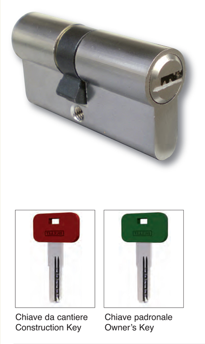 Provided with: 1 construction key, 1 owner's key, 1 M5x70 screw, 1 card for duplication.
