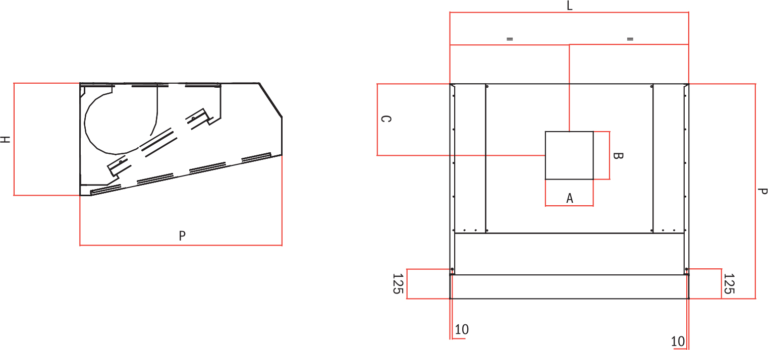 The activated carbon hoods with LED lights in the self-suction wall-mounted and Mini Snack models are hoods from the respective series to which an additional filtering septum has been added consisting of a class G2 synthetic material filter and a filter containing activated vegetable carbon type " CARBOFIL AGC” in the AG version, in addition to the stainless steel filter with microstriated mesh.