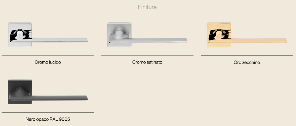 The finishes of the Jet Linea Calì door handle include polished chrome brass, satin chrome, pure gold and matt black RAL 9005, designed to adapt coherently to any furnishing style.