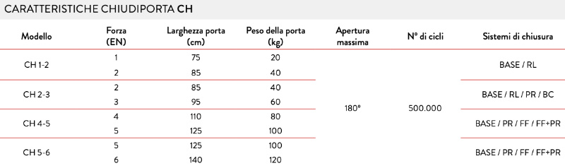 ATTENTION: CH 1-2 is not CE marked. Justor CH 2-3 4-5 and 5-6 models are door closers for fire doors marked CE.
