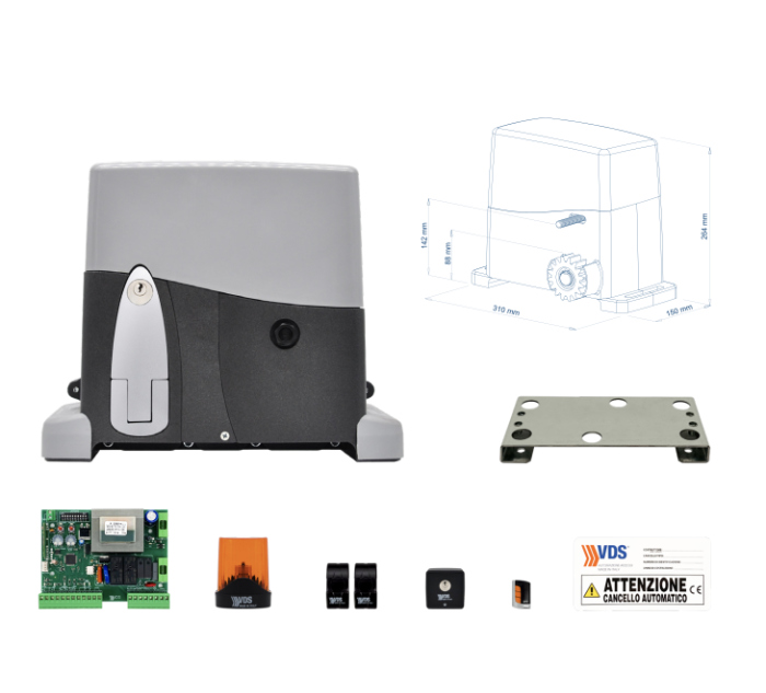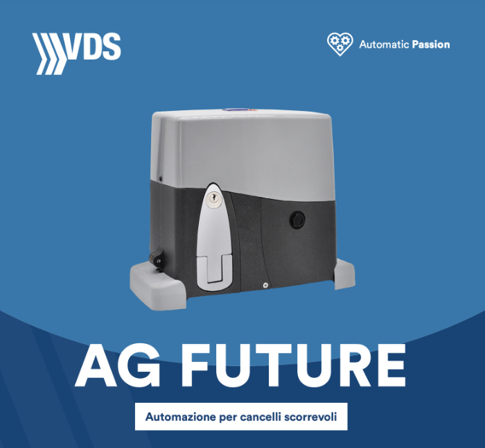 It includes an AG-FUTURE VDS sliding gate gearmotor and what is needed to automatically move the sliding gate leaves.