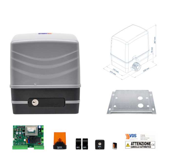 It includes a SIMPLY VDS sliding gate gearmotor and what you need to control the automation of your sliding gate.