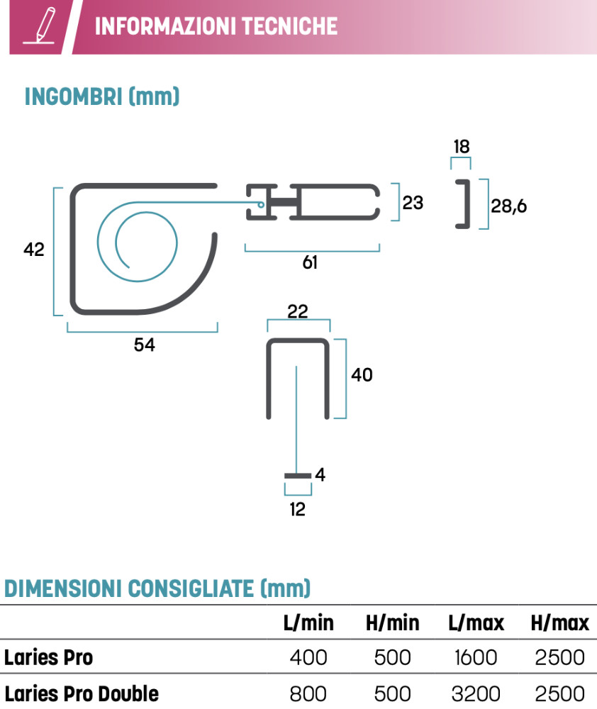 Laries Pro Effezeta is the new spring-loaded mosquito net with side rolling, brush, controlled opening and retractable track guide.