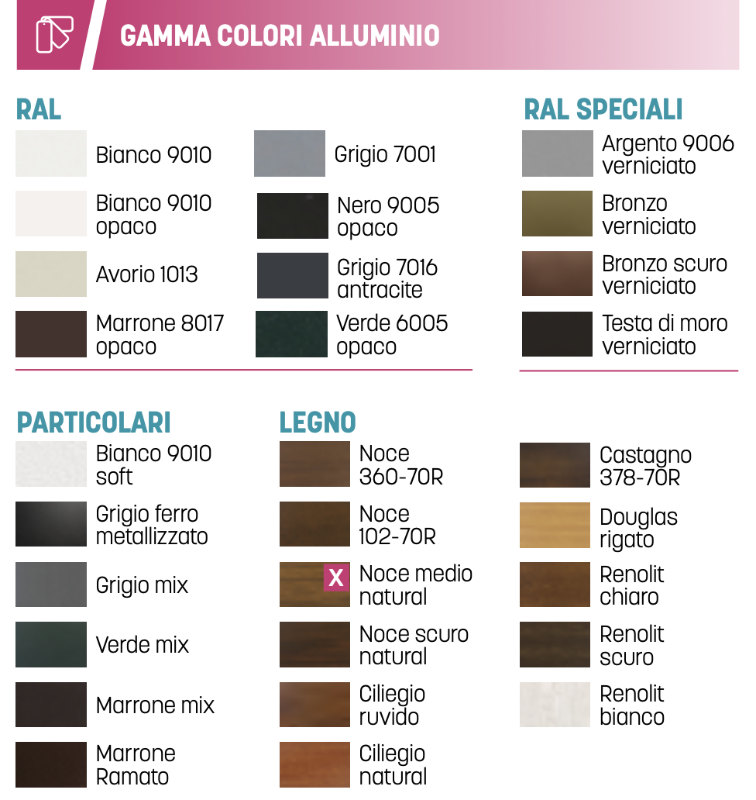 Choose from a wide range of aluminum colors to adapt the product to any environment and need. Some colors are available on request (contact us).
