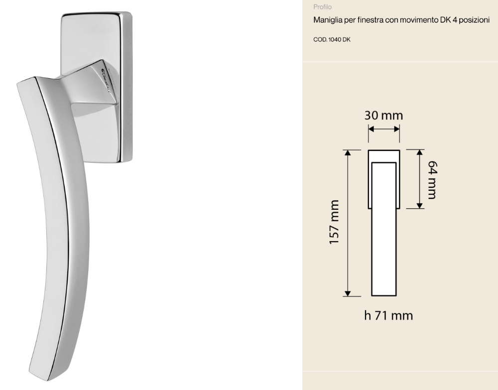 The Profilo Linea Calì window handle with 4-position DK movement is designed for those seeking a clean, contemporary style without sacrificing Italian craftsmanship quality.