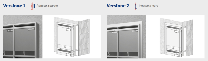 - Plexiglas door thickness. mm. 5, pivot opening, internally lacquered, with sight glass, in the color of the profiles, safety cylinder lock with n. 2 keys, internal vandal-proof name plate, progressive number engraved on the metal profile;