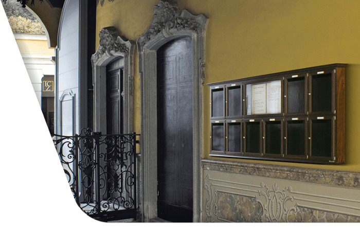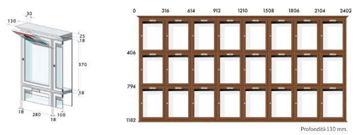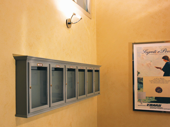 - Solid wood doors that can be opened like a book, brass finish safety lock with n. 2 keys, special brass finish hinges, brass name plate, sight glass in thick glass. mm. 4 foum / bris ground.