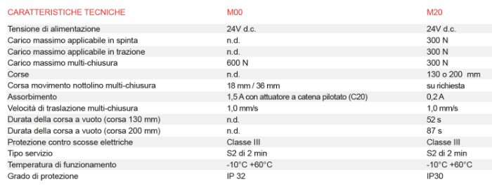 24V operation, maximum applicable load 600N, multi-closing pawl movement stroke 18 and 36mm (automatic horizontal movement which, by means of a coupling device, moves the pawls of the perimeter hardware to allow the hermetic closure of the window in several points).