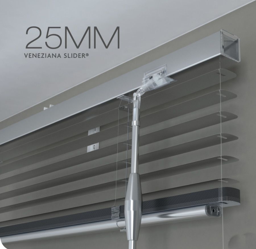 - Venetian Blind Slider 25 mm is a blind with safe control Slider and rod for orientation;