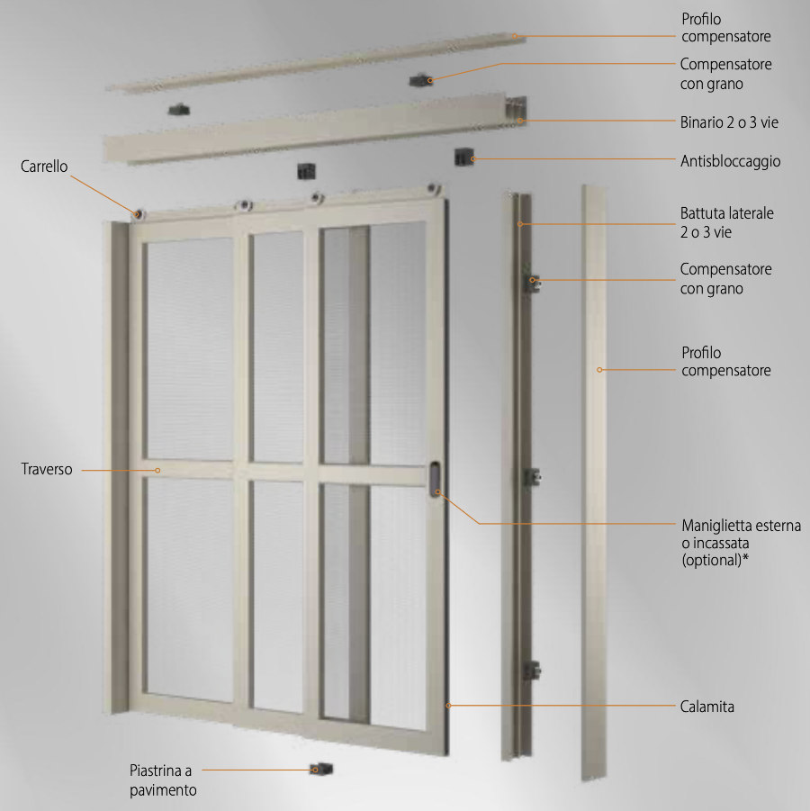 Maya Bettio Zanzariera a Pannelli Scorrevoli Senza Guide a Pavimento