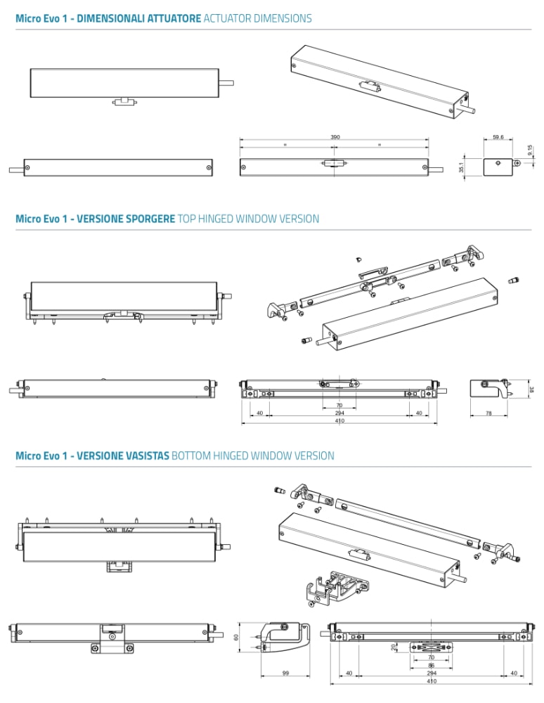 Micro Evo 1 Mingardi Double Link Chain Actuator for Top Hinged or Vasistas Windows