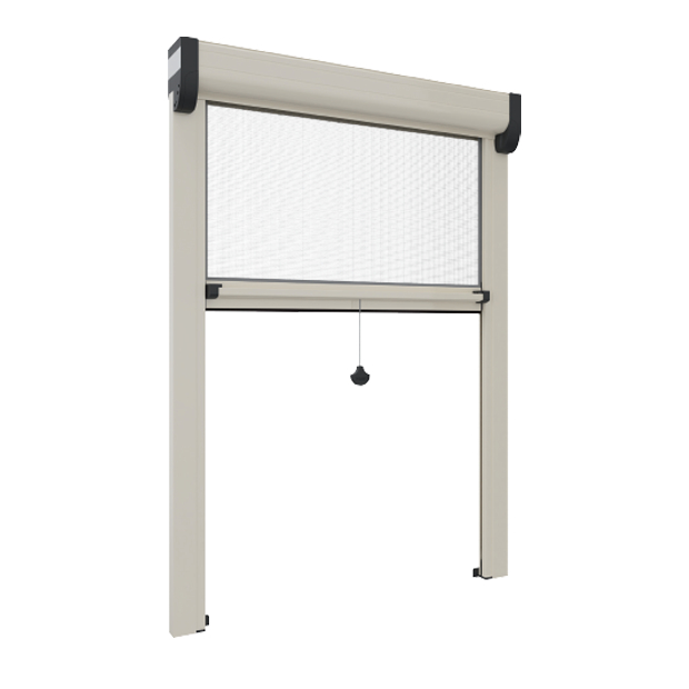 Vertical sliding mosquito net, ideal for windows, Officine Rami Mistral 50 Click Clack model with adjustable head and telescopic guide with buttons.