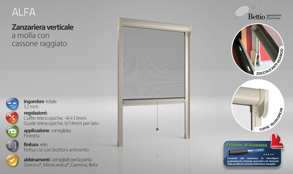 For basic measures less than 750 mm, the manufacturer of mosquito nets Bettio does not ensure the possibility of inserting the clutch (it depends on the maximum achievable, to be checked case by case). If for technical reasons it was not possible to engage the clutch, the mosquito net will still be produced within specified time points and the additional cost of the clutch will be returned to the customer.