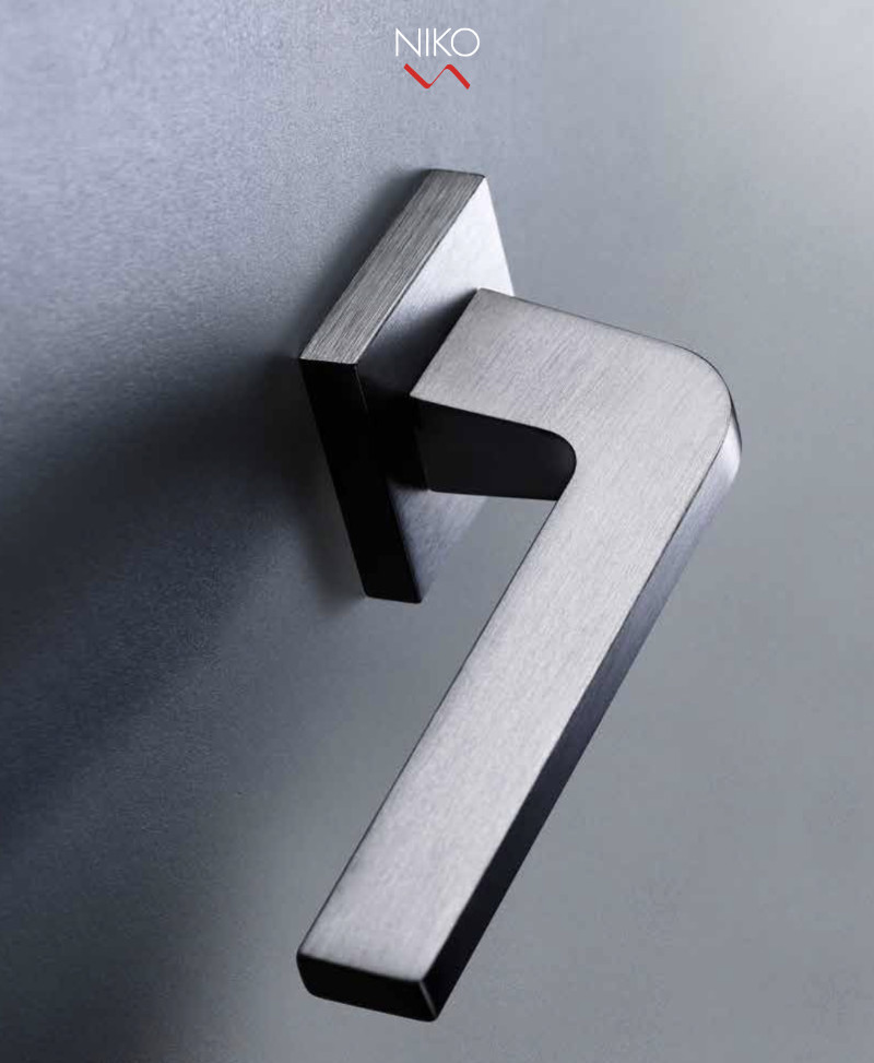 The Niko Arieni handle features a clean, rectangular handle design, which not only gives it a modern aesthetic but also ensures an excellent grip. Its bold, geometric shapes make it ideal for contemporary, minimalist environments.