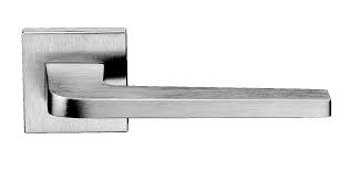 Niko Arieni: pair of door handles with square-shaped escutcheons and rosettes, made in Italy.