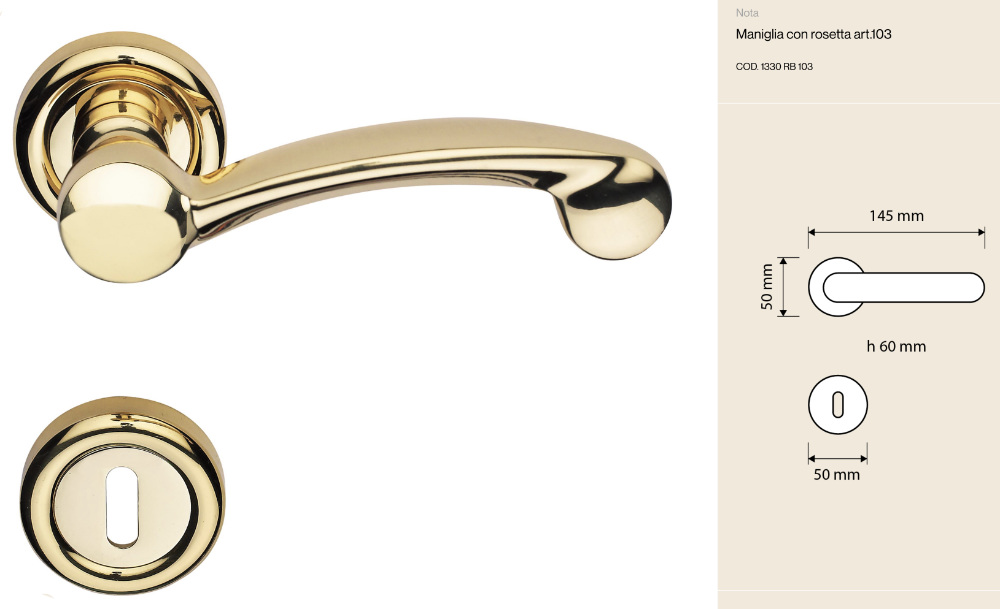 Nota Linea Calì Brass Door Handle Italian Classic Harmony