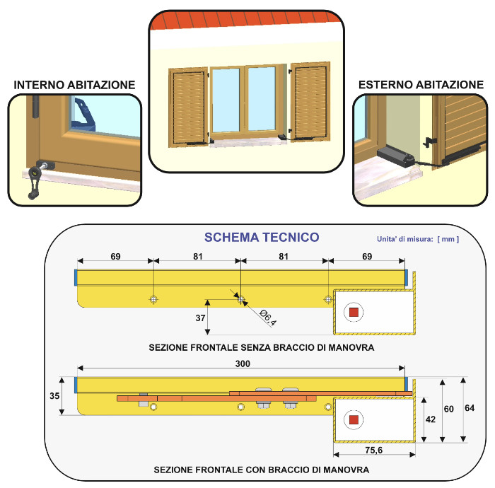Aprifacile Tecnometalsystem is a modern device equipped with a clutch, which allows the shutters to be opened, closed and locked in any position from inside the home without having to open the internal window.