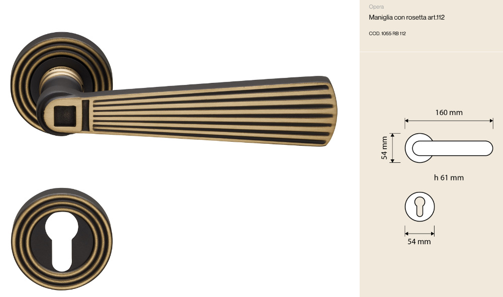 The Opera handle is the ideal choice for those who want a furnishing accessory with a strong and refined character, capable of integrating perfectly both in classic and aristocratic contexts, as well as in modern spaces with vintage references.