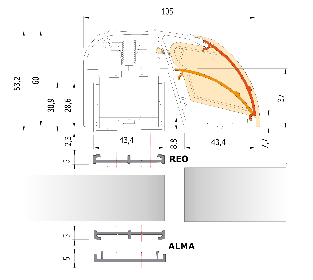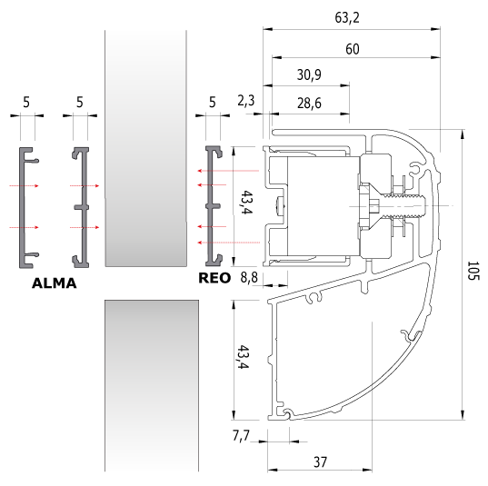 P300RP Electromagnet to be applied with Handle 400mm 300kg Aluminum Profile - NFS61937 CDVI Architectural profile handle with 300kg monitored magnets.
